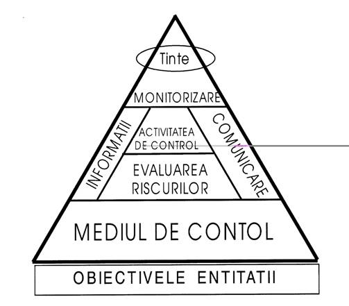 sistemelor si operatiunilor zilnice (in cazul Controlul intern trebuie sa fie independent de managementul zilnic al activitatilor. Controlul fizic Se ocupa, mai ales, de gestiunea bunurilor si presupune proceduri si masuri de securitate destinate sa asigure ca accesul la bunuri este permis numai personalului autorizat. Accesul include atat accesul direct, cat si accesul indirect prin documente. Aceste controale capata importanta in cazul bunurilor valoroase, portabile, dezirabile sau care pot fi schimbate. Controlul privind autorizarea si aprobarea Toate deciziile de implementare si operatiunile necesita autorizarea sau aprobarea de catre o persoana responsabila corespunzatoare. in mod necesar si obligatoriu, limitele acestor autorizari sau aprobari trebuie specificate. Controlul aritmetic si contabil Acest control se desfasoara in cadrul functiei de inregistrare care verifica daca tranzactiile ce urmeaza a fi inregistrate si prelucrate au fost autorizate, daca au fost incluse toate operatiunile si daca au fost inregistrate corect si prelucrate corespunzator. De asemenea, controlul aritmetic si contabil include verificarea acuratetii aritmetice a inregistrarilor, mentinerea si verificarea totalurilor, reconcilierilor, balantelor de verificare a conturilor, precum si a documentelor. Controlul personalului Trebuie sa existe proceduri care sa asigure ca personalul are capacitati profesionale pe masura responsabilitatilor. Inevitabil, functionarea adecvata a oricarui sistem depinde de competenta si integritatea celor care il opereaza. Calificarea, selectia si pregatirea personalului, precum si caracteristicile individuale ale personalului sunt trasaturi importante care trebuie avute in vedere la stabilirea oricarui sistem de control intern. Controlul privind supervizarea Orice sistem de control intern trebuie sa includa supervizarea de catre factorii de conducere responsabili, a tranzactiilor si operatiunilor zilnice, precum si a inregistrarii acestora. Controlul de management Acesta este controlul exercitat prin activitatea de management in afara rutinei zilnice a sistemului, incluzand controlul de supervizare general, verificarea manageriala a conturilor, comparatia cu bugetul, functia de audit intern si oricare proceduri speciale de control. Controlul financiar intern In unele cazuri, controlul financiar actioneaza sub forma unui control autonom (in cazul regiilor, societatilor pe actiuni, companiilor nationale etc). in asemenea cazuri, controlul financiar are o gama variata de sarcini, inclusiv aprobarea in avans a tuturor propunerilor privind efectuarea tranzactiilor. in mod normal, o tranzactie se aproba doar cand exista certitudinea ca, intre altele, este legala si conforma si sunt suficiente fonduri disponibile pentru derularea ei. Modele de control intern Controlul intern este o preocupare generala deoarece intr-un fel sau altul toata lumea efectueaza control in activitatile cotidiene. Din aceste considerente tot mai multi oameni de afaceri, dar mai ales managerii, profesionisti in domeniu au in permanenta in fata intrebarea "Ce putem face pentru a detine un control mai bun al activitatilor?" In ultimele decenii, managerii au devenit mai interesati si s-au implicat tot mai mult in monitorizarea mai atenta a sistemului de control intern in vederea realizarii evaluarii riscului. Preocupari legate de slabiciunile controlului intern si asigurarea rezonabila pe care trebuie sa le ofere acesta managementului au fost in atentia permanenta a specialistilor in domeniu, care au elaborat urmatoarele modele: Modelul COSO - SUA Modelul CoCo - Canada Modelul COSO In anul 1985, senatorul american Treadway a initiat o cercetare asupra controlului intern si a rolului sau in viata organizatiilor, instituind "Comisia Treadway". La recomandarile acestei comisii s-a creat un comitet intitulat - Comitetul de Sponsorizare al Organizatiilor - COSO, care a reunit competentele unui numar mare de membri ai I.I.A., profesionisti in domeniu, cabinete de audit extern si mari intreprinderi americane si care a elaborat o lucrare intitulata "Cadrul controlului intern". Lucrarea defineste conceptul de control intern si precizeaza faptul ca, controlul intern nu are o legatura directa cu sistemele de inspectie si verificare recunoscute. Definirea conceptului de control intern, problema care inca mai comporta controverse, s-a internationalizat si tinde sa accepte acelasi sens al termenului din engleza "control intern", care inseamna in primul rand "a detine controlul" si apoi "a verifica" si nu sensul termenului din franceza care inseamna "a verifica" si apoi "a inspecta". Precizam ca, in acest ansamblu complex de mijloace si practici pe care fiecare entitate le utilizeaza pentru a-si administra cat mai bine activitatile in vederea atingerii obiectivelor prestabilite, COSO prin cadrul de control elaborat intentioneaza sa induca o oarecare ordine in domeniu. COSO este o organizatie independenta din sectorul privat dedicata studierii factorilor cauzali de producere a fraudelor financiare si imbunatatirii calitatii raportarii financiare prin: etica in afaceri, controale interne eficiente, guvernare corporatista. In septembrie 1992, COSO defineste controlul intern ca fiind un proces efectuat de Consiliul de administratie, conducere si intregul personal al entitatii, menit sa furnizeze o asigurare rezonabila cu privire la indeplinirea obiectivelor organizatiei, avand in vedere: eficacitatea si eficienta operatiilor; realitatea rapoartelor financiare; conformarea cu legile si cu regulamentele aplicabile. Definitia controlului intern ne propune unele elemente cheie: controlul intern este un proces, un mijloc pentru a atinge un scop si nu un scop in sine; controlul intern este efectuat de toata lumea si el inseamna nu numai manuale de politici, formulare si documente, ci oamenii de la fiecare nivel al organizatiei; controlul intern implica relativitate in organizare si nu este o magie care va conduce la efectuarea lucrurilor p