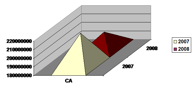 ACTIV 1. Active imobilizate: a) Imobilizari necorporale 85,56 b) Imobilizari corporale 1211,78 c) Imobilizari financiare 43,83 d) Cheltuieli inregistrate in avans 202,07 Total : 1543,24 2. Active de exploatare: a) Stocuri1182,01 b) Clienti1322,44 c) Alte creante 140,30 d) Diferente de conversie active 298,82 e) Decontari din operatii in curs de clarificare 0,00 Total :2943,57 3. Active in afara exploatarii: a) Investitii financiare pe termen scurt0,00 Total : 0,00 4. Active circulante de trezorerie: a) Conturi la banci in lei622,22 b) Conturi la banci in devize 466,63 c) Casa in lei13,18 d) Casa in devize5,91 e) Alte valori56,57 Total : 1164,51 PASIV 1. Resurse durabile: a) Capitaluri proprii19143,02 b) Credite bancare pe termen mediu si lung 0,00 c) Provizioane si amortizari 2201,21 d) Venituri inregistrate in avans 0,00 Total :21344,23 2. Pasive de exploatare: a) Furnizori 15971,23 b) Dobanzi 288,01 c) Alte imprumuturi si datorii financiare 1813,58 d) Datorii cu personalul si asigurari sociale 294,93 e) Impozitul pe profit 8340,11 f) TVA 0,00 g) Alte datorii fata de stat 20,64 h) Diferente de conversie pasiv 3,44 i) Furnizori debitori (se scad) 20,02 Total : 26520,01 3. Pasive in afara exploatarii: a) Decontarii cu grupul si alte datorii 8,81 b) Creditori diversi 15,17 c) Dividende0,00 Total : 96,98 4. Pasive de trezorerie: a) Credite bancare pe termen scurt126,56 Total : 126,56 CALCULUL SI INTERPRETAREA INDICATORILOR ECHILIBRULUI FINANCIAR1. INDICATORII BILANTULUI CONTABILFRN = Capitalul permanent - Active imobilizate nete FRN2007 = ( 4285,63+ 0) - 585,35 =4240,28 FRN2008 = ( 19163,32+ 0) - 11624,97= 7539,35 FRN = FRP + FRI FRP = Capitaluri proprii - Active imobilizate nete FRI = Datorii pe termen mediu si lung FRP2007 = 4285,63-585,35 =4240,28 FRI2007 = 0 FRN2007 = 4240,28+ 0 =4240,28 FRP2008 =19163,32 -11624,97 =7539,35 FRI2008 = 0 FRN2008 = 7539,35+ 0 =7539,35 Se observa ca fondul de rulment net este pozitiv si in crestere, situatie favorabila pentru firma, ceea ce inseamna ca sursele permanente reusesc sa finanteze integral alocarile permanente, ramanand si un surplus pentru finantarea nevoilor ciclice. Acest fapt se datoreaza cresterii continue intr-un ritm superior pe perioada de analiza a resurselor permanente fata de cresterea alocarilor stabile. Fondul de rulment propriu pozitiv evidentiaza faptul ca firma se afla intr-o stare de echilibru financiar pe termen lung, realizat pe baza capitalurilor proprii. Astfel chiar si dupa rambursarea datoriilor bancare pe termen lung, activele imobilizate vor putea fi finantate in intregime pe seama capitalurilor pe termen lung. 2. INDICATORII BILANTULUI FINANCIARFR = Resurse mai mari de un an - Mijloace mai mari de un an FR2007 = 4401,98 -585,35 =3916,63 FR2008 = 19163,32 -11624,97 =7538,35 Fondul de rulment este expresia echilibrului financiar pe termen lung si reflecta existenta unei marje financiare de capitaluri permanente pentru finanterea activelor circulante nete de datoriile curente. Cresterea fondului de rulment reflecta alocarea acumularilor nete ale exercitiului. FR=Mijloace mai mici de un an+Mijloace de trezorerie-Resurse mai mici de un an FR2007 = 14885,65+1068,82 -10488,85 =5465,62 FR2008 = 34436,89 +2054,95 -18738,91 =17752,93 NFR = Mijloace mai mici de un an - (Resurse mai mici de un an - Pasive de trezorerie) NFR2007 =14885,65 - (10488,85 -400) =13996,80 NFR2008 =34436,89- (18738,91-126,56) =15571,42 Necesarul de fond de rulment reprezinta un surplus de nevoie de stocuri si creante in raport cu sursele temporare (ciclice) posibile de mobilizat. Existenta unui fond de rulment pozitiv poate fi considerata ca fiind normala, daca este rezultatul unei politici de investitii privind cresterea stocurilor si a creantelor. Astfel, necesarul de fond de rulment poate evidentia un decalaj nefavorabil intre lichiditatea stocurilor si a creantelor, si exigibilitatea datoriilor de exploatare. Necesarul de fond de rulment evidentiaza efectul pozitiv al unei cresteri economice sanatoase dar si efectul unei incetiniri a rotatiei stocurilor si creantelor in raport cu cifra vanzarilor. Nevoia de fond de rulment a inregistrat valori pozitive si o tendinta crescatoare pe intreaga perioada de analiza, ceea ce inseamna,ca a existat permanent un surplus de nevoi temporare in raport cu sursele temporare. Acest lucru s-a datorat cresterii intr-un ritm mai rapid a activelor ciclice decat a surselor ciclice. 3. INDICATORII BILANTULUI FUNCTIONALFRNG = RD - MS FRNG2007 =4662,57 -4177,78 =484,79 FRNG2008 =21344,23-1543,24 =19800,99 FRNG = MC - RC FRNG = (ACE + ACIE + AT) - (PE + PIE + PT) FRNG2007 =(8274,49+19,63 +1177,96) - (14167+400+376,63) =9472,08-14943,63 = - 5491,55 FRNG2008 = (2943,57+ 0 +1164,51) - (26520,01+96,98+126,56 )= 4108,08-26743,55 = - 22635,47 Necesarul de fond de rulment din exploatare reprezinta excedentul de nevoi ciclice de finantare ramase dupa acoperirea activelor curente pe seama resurselor provenite din activitatea de exploatare si care vor trebui sa fie acoperite din resurse permanente. Indicatorul inregistreaza pe perioada analizata o valoare negativa si in scadere. Analiza financiara a companieiPentru realizarea analizei economico-financiare este necesara identificarea unor aspecte deosebit de importante pentru intreprindere, cum ar fi: analiza potentialului intern; analiza rentabilitatii; analiza patrimoniala; Viabilitatea economica a intreprinderii este dependenta de volumul, structura si eficienta utilizarii resurselor umane, materiale, financiare si umane. Cifra de afaceri reprezinta un indicator esential pentru precizarea locului societatii comerciale in sectorul de activitate, a pozitiei acesteia pe piata, a capacitatii de a lansa si dezvolta activitati profitabile. Cifra de afaceri reprezinta suma totala a veniturilor din operatiuni comerciale efectuate de o firma, respectiv vanzarea de marfuri si produse, intr-o perioada de timp determinata.