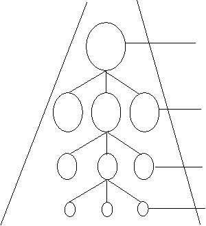 Fig. 4.2 Organigrama piramidala c) Organigrama circulara plaseaza in centrul cercului managementul de varf, urmat de restul structurilor organizatorice, plasate pe cercuri concentrice aflate la diferite distante fata de managementul de varf, in functie de nivelurile ierarhice specifice (fig. 4.3). Legenda: AGA - Adunarea Generala a Actionarilor C.A. - Consiliul de Administratie
