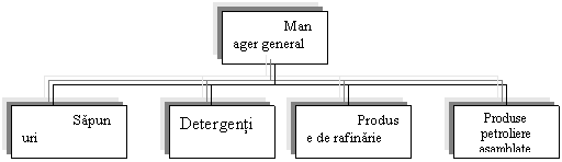 Compartimentarea pe produse presupune gruparea la un loc a tuturor posturilor care participa la realizarea unui produs sau a unei grupe de produse asemanatoare. Aceasta compartimentare faciliteaza specializarea inalta a personalului si formeaza competitia dintre produse. Compartimentarea pe produse conduce la o structura de forma celei din figura 2.8.