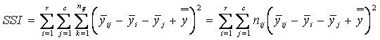 unde notatiile folosite au urmatoarele semnificatii: yijk = valoarea variabilei dependente pentru observarea k din esantionul cu r nivele ale randurilor (i = 1.r) si cu c nivele ale coloanelor (j = 1c)