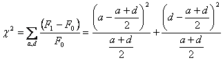 unde a,b,c,d, reprezinta frecventele tabelului de contigenta de tipul 2 x 2, dupa cum urmeaza: