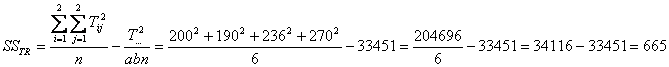 Pentru a stabili daca exista sau nu o deosebire semnificativa intre cele trei sortimente de anvelope, ca si durabilitate in utilizare, se face o analiza a variatiei avand la baza adtele din tabel. Se calculeaza termenii necesari determinarii sumei abaterilor patratelor pe total: