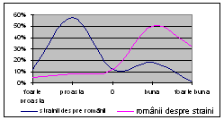 Aproape jumatate dintre straini au o parere proasta despre spiritul de initiativa al romanilor, iar un sfert dintre ei au o parere buna, mai putin decat cred romanii despre ei insisi si decat isi inchipuie ca strainii cred despre romani. Disciplina romanilor constituie o problema pentru mai mult de jumatate din straini, numai 35% dintre ei avand o parere buna sau foarte buna in aceasta privinta. Romanii cred ca strainii au o parere mai buna despre disciplina lor decat se intampla in realitate. 40% dintre straini au o parere foarte proasta sau proasta despre capacitatea manageriala a romanilor, 25% au o parere buna si nici unul nu are o parere foarte buna. Mai mult de jumatate dintre romani cred ca au calitati manageriale bune sau foarte bune, insa sunt destul de realisti in ceea ce priveste parerea strainilor despre ei. Deasemenea sondajul a mai indicat ca peste jumatate dintre romani cred ca strainii abordeaza un aer de superioritate fata de romani, iar un sfert nu sunt de acord cu acesta parere. Mai mult, majoritatea romanilor cred ca romanii au un aer de superioritate nejustificat fata de alti romani, subordonati. Concluzia care se desprinde este aceea ca strainii au o opinie negativa despre unele trasaturi ale romanilor, opinie care se reflecta in atitudinile si comportamentul lor chiar daca nu in mod intentionat. Potrivit legii psihologice care spune ca daca cineva are o anumita parere despre altcineva, acel altcineva tinde sa se comporte in mod involuntar in asa fel incat sa confirme, acea parere chiar daca acel comportament este in defavoarea sa (profetia autoimplinita), romanii au tendinta sa se comporte potrivit convingerilor strainilor. Ceea ce inseamna ca in acelati context economic si social, comportamentul romanilor ar fi foarte diferit daca convingerile strainilor ar fi altele. Dupa parerea mea, modificarea cestor convingeri este posibila printr-o activitate dinamica de PR, alaturi de un management de calitate. Pentru aceasta este important ca organizatiile romanesti sa -si dezvolte servicii de PR profesioniste si sa acorde mai multa atentie gestionarii propriei imagini. Referindu-se la consecintele unei activitati precare de PR in Romania, Bernd Bartels, vicepresedintele concernului "Mannemann - Demag" spunea intr-o convorbire oficiala ca: "In Germania lipsesc aproape cu desavarsire informatiile publice despre economia si evolutiile din Romania, despre facilitatile oferite investitorilor straini, strict necesare pentru firmele mici si mijlocii, care nu dispun de documente compatibile cu cele ale marilor concerne, dar care pot prezenta un potential urias de afaceri si de cooperare, mai ales daca s-ar pune in valoare punctele forte ale industriei romanesti. O activitate sustinuta de public relations se impune pentru eliminarea perceptiei eronate ca Romania s-ar afla undeva dincolo de Marea Neagra." [, pag. 25]. Perceptia mediului de afaceri romanesc asupra activitatii de PR Dupa cum am mai spus, atitudinea marii majoritati a managerilor romani cu privire la PR este una de necunoastere si ignorare, iar necunoasterea genereaza suspiciune. Totusi ei ar trebui sa-si revizuiasca aceasta atitudine, pentru ca, in viitor, pe masura ce consumatorii romani vor deveni mai pretentiosi, adica in conditiile unei concurente crescute, piata va fi detinuta de cei care vor duce o politica de impunere a imaginii de marca a organizatiei, a produselor si serviciilor sale prin PR si publicitate. Un studiu realizat de agentia de publicitate Leo Burnett in perioada mai - iunie 2000 pe un esantion reprezentativ la nivelul oraselor cu peste 300 000 de locuitori, esantion alcatuit din 1000 de persoane cu varste cuprinse intre 13 - 19 ani, a relevat ca tinerii sunt un segment de piata extrem de pretentios si diferit fata de parintii lor. Desi adolescentii nu au independenta financiara, se bucura de o puternica influenta asupra deciziei de cumparare a parintilor. Studiul a mai aratat ca desi se uita foarte mult la televizor, aproximativ 50% dintre ei prefera sa schimbe canalul cand sunt difuzate reclame. Acest lucru inseamna ca, cel putin pentru acest segment de cumparatori, viitorul este al relatiilor publice si al mijloacelor de publicitate neconventionala. Despre romani ca popor se spune in mod stereotip ca sunt deschisi si primitori, insa societatea romaneasca in ansamblul sau este inchisa. Nimeni nu are rabdare sa-l asculte pe celalalt, fiecare este preocupat sa vorbeasca despre sine si propriile probleme. Specialistii in comunicare sunt printre putinii oameni care reusesc sa spuna clar ce vor si sa se faca ascultati. Conform unui studiu realizat, in anul 2000 pentru PricewaterhouseCoopers, de un grup de economisti si cercetatori in 35 de state, climatul de afaceri, economia si cadrul legislativ din Romania au gradul de opacitate 71. Opacitatea este definita drept o lipsa de "practici clare, precise, formale si general acceptate" si coreleaza cinci factori principali - protectia legala a afacerilor, politici macroeconomice, raporturi ale companiilor, coruptie si reglementari guvernamentale - care afecteaza costul capitalului . Din acest motiv, Romania este perceputa ca un mediu de afaceri extrem de imprevizibil, de aceea si campaniile de PR ale firmelor straine sunt mai expuse esecului, pentru ca se adreseaza unui public foarte diferit de cel din tara lor de origine. Cu cat afacerea este mai importanta si pozitia pe piata mai puternica, companiile, pe langa faptul ca recurg la angajati locali, prefera sa foloseasca "limbajul de lemn" in dialogul cu publicul, mergand pe ideea ca decat sa transmita o informatie care poate fi interpretata gresit, mai bine sa nu spuna nimic sau sa foloseasca "sabloanele" (acele variante de mesaje care au fost folosite cu succes de altii inainte). Preferinta romanilor pentru "limbajul de lemn" dateaza din anii socialismului si s-a restructurat in pas cu economia nationala, ascunzand de fapt incapacitatea de a comunica a romanilor si secretomania, care ii determina pe ro