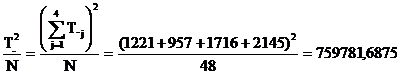 Se cere sa se aprecieze intensitatea influentei factorului experimental (forma de amenajare) asupra variabilei dependente "volumul vanzarilor" folosind o schema de proiectare complet aleatoare. Rezolvare: Pentru a calcula SST - suma abaterilor patrate pe total, se determina mai intai cei doi termeni care intervin in relatie: